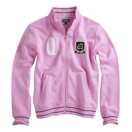 Розовая, очень мягкая ветровка из 100% хлопка. Два кармана и полная застежка-молния Вышивка: индекс Q на груди белого цвета.